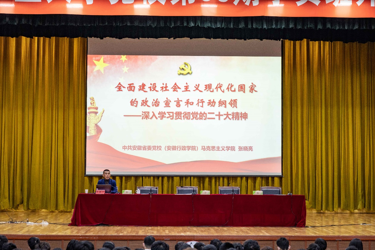 开班仪式后,安徽省委党校马克思主义学院副院长张晓亮、我校马克思主义学院教授唐莉围绕党的二十大精神分别为两校区党校学员上了第一堂党课。